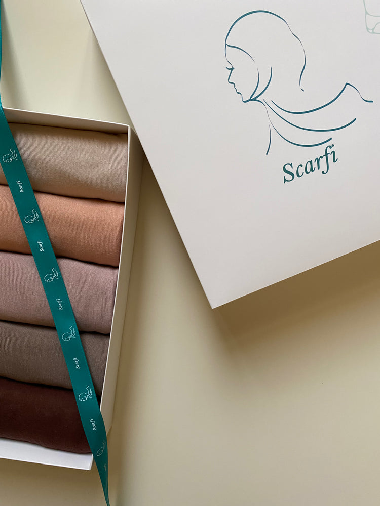 Gift box contains 5 pieces of cotton stretch scarves.
