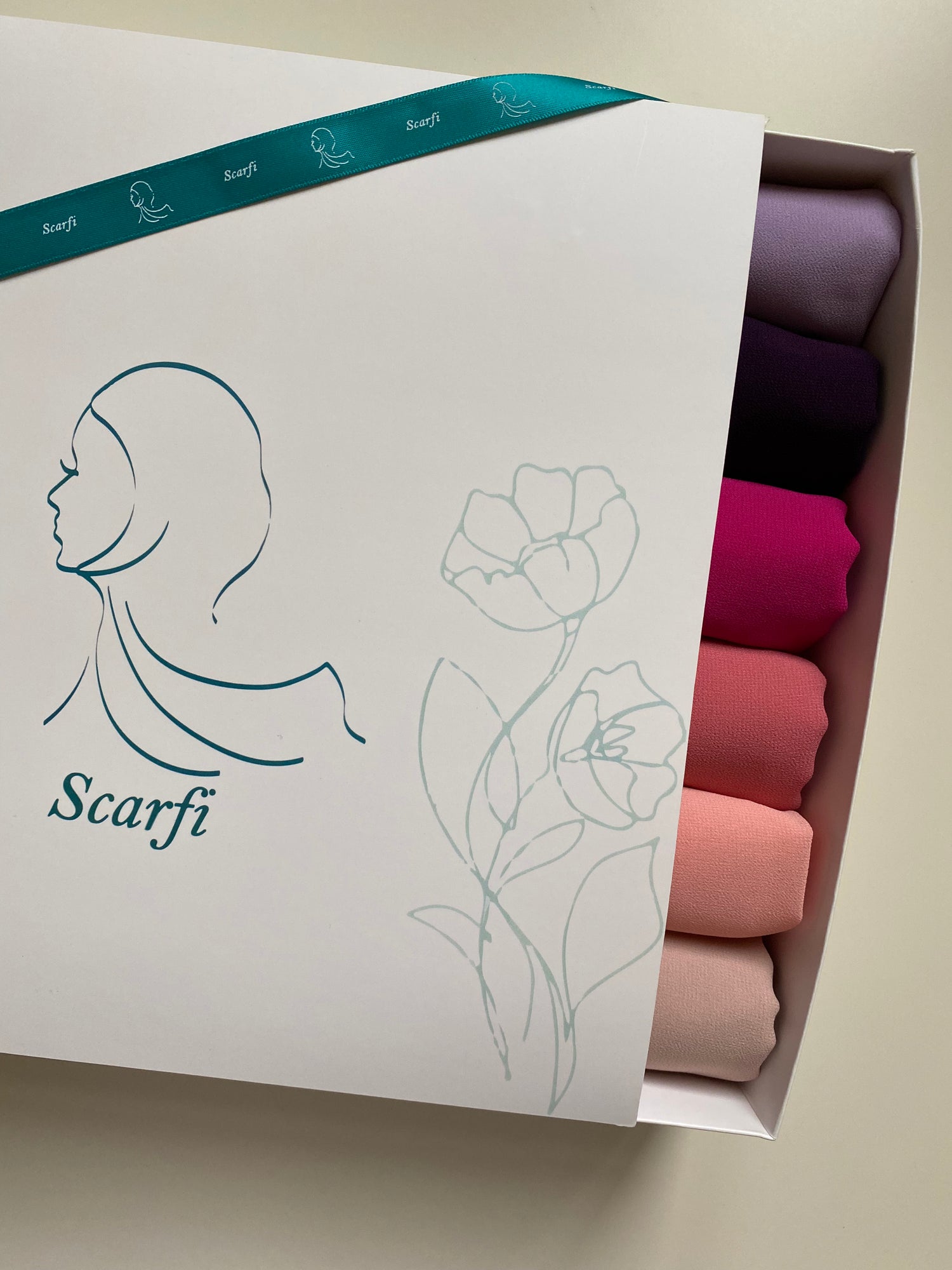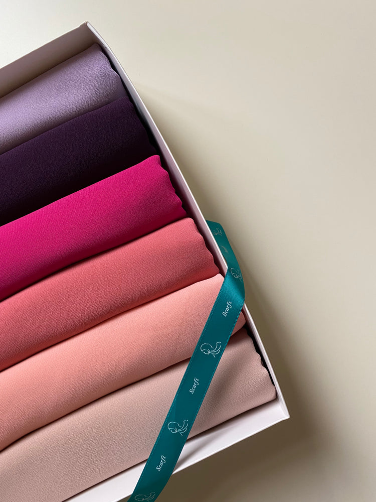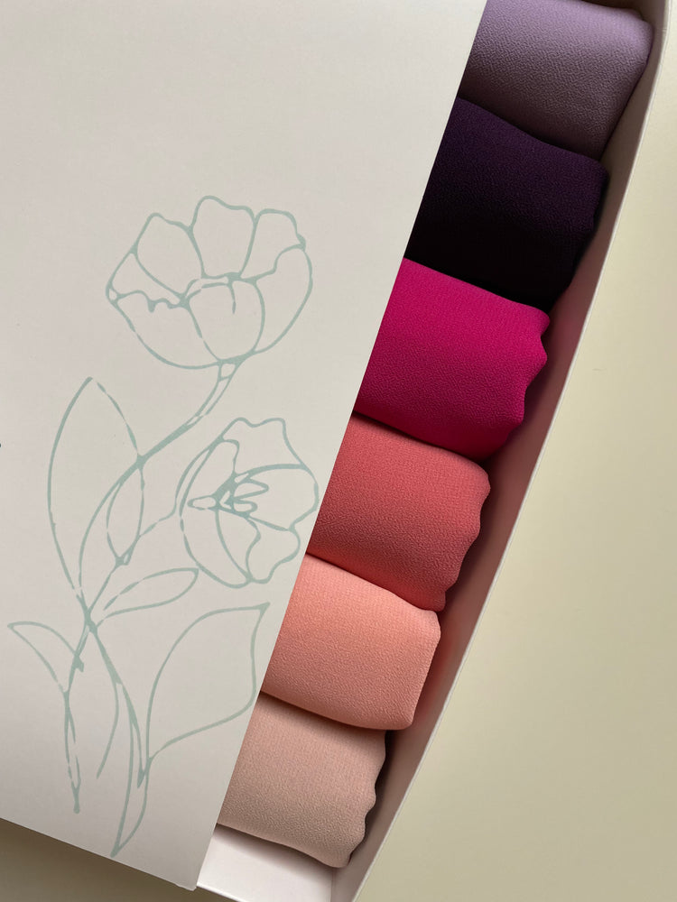 Gift box containing 6 pieces of crepe chiffon scarves.